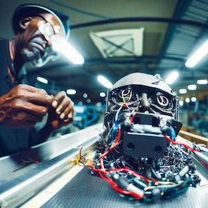 Alienação no Trabalho Faísca Mafagafo, Temporada 4, Episódio 2 Era o último dia de Antônio como peça daquela indústria vital. Antônio ligou a caixa de voz à fonte de energia com um conector quatro-cinco-sete adaptado. Não era padrão, mas só precisava funcionar por alguns instantes. O autômato ainda não tinha olhos propriamente, com isso Antônio não se importava. O autômato podia ver, mas, se alguém o olhasse, veria apenas um amontoado de circuitos grandes e engrenagens pequenas.